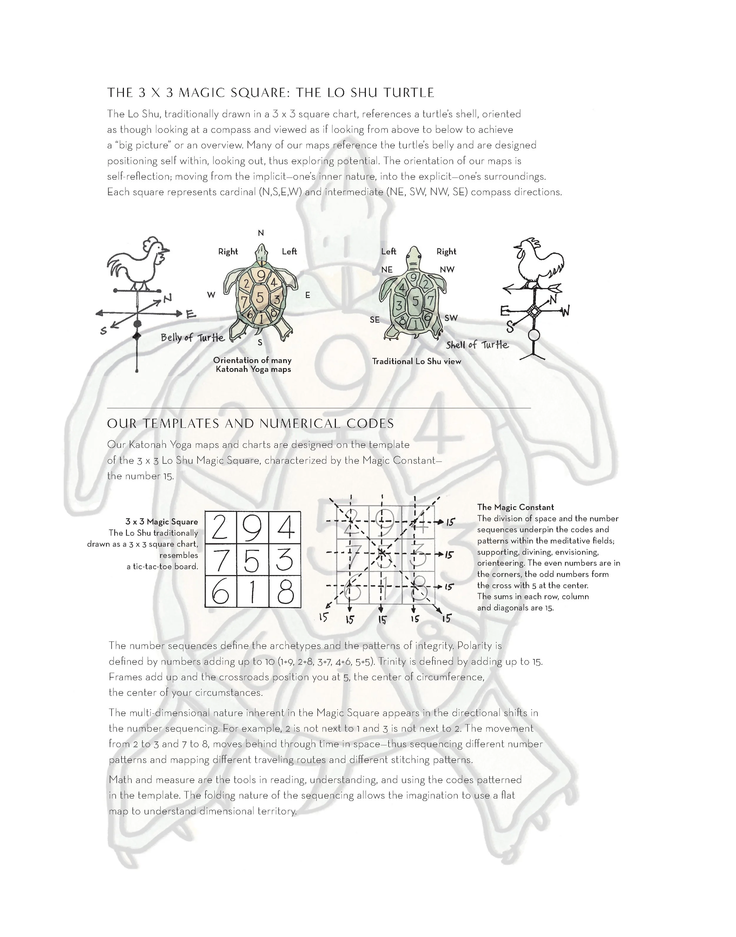 This chart, based on the LoShu turtle shell resembles a tic-tac-toe board and a compass
